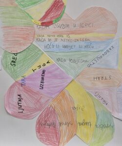 Nakon razgovora u razredu učenici su likovno prikazivali kako različiti digitalni sadržaji mogu utjecati na njihovo raspoloženje i ponašanje. Na taj su način razvijali i digitalnu i emocionalnu pismenost. Od učeničkih radova zajedno smo stvorili plakat emocija.