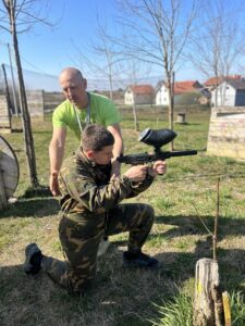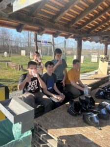 Krenuli smo oko 8.30 ujutro sati te nakon otprilike sata vožnje stigli u adrenalinski park Četiri rijeke gdje smo se mogli okušati u air footballu, kartingu i paintballu. Već tijekom vožnje autobusom vladala je vesela atmosfera, razgovarali smo i s nestrpljenjem iščekivali dolazak. Air football (ili u prijevodu – nogomet u golemim zračnim balonima) bio je pun smijeha, uzbuđenja i pokojeg pada. Nakon toga uslijedio je paintball koji je svima podignuo adrenalin. Glasno smo navijali za svoje prijatelje i bodrili ih sa strane. Iako je bio ponuđen i karting, većina je ipak odlučila ostati na paintballu i nastaviti zabavu.