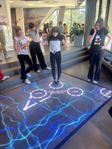 Nakon aktivnog dijela izleta okrijepili smo se ćevapima kako bismo prikupili novu energiju za posjet centru posvećenom Nikoli Tesli – Experience Center Karlovac. Tijekom ručka svi smo prepričavali najzabavnije trenutke dana i dojmove iz adrenalinskog parka. Ali ni Centar nije bio manje zabavan. Saznali smo mnogo o Teslinu životu gledajući videoprezentacije, igrajući interaktivne igre i slušajući zanimljive priče vodiča. Osobito su nam se svidjeli lebdeći tableti koji su privukli veliku pozornost. Znanje smo provjerili kratkom igrom u obliku escape rooma, koja je dodatno potaknula timski duh i suradnju.