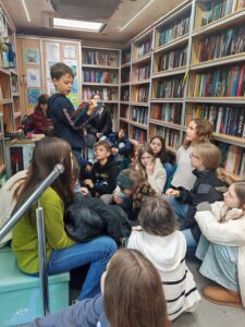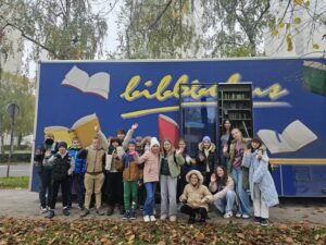 Već nam je postala tradicija upoznati petaše s bibliobusom pa ni ova generacija nije bila iznimka. Učenici petog razreda sa zanimanjem su razgledali knjižnicu u autobusu (točnije: kamionu!) i imali pregršt pitanja za knjižničarku i vozača. Saznali su na koji se način knjige posuđuju, koliko ih ima, pa čak i padaju li kad se skrene u oštar zavoj. Neke je osobito razveselilo što je rok posudbe znatno dulji nego u „običnoj“ knjižnici – čak 70 dana – a odjednom se može posuditi pet knjiga!